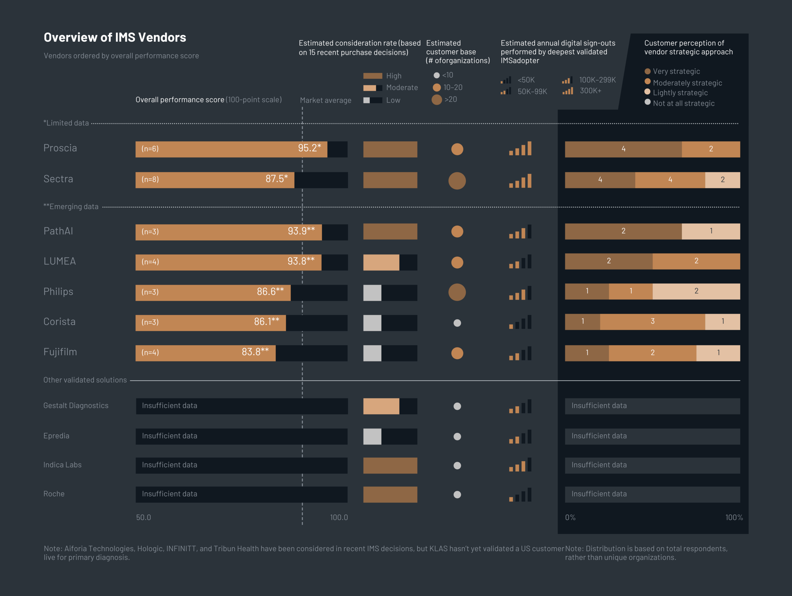 KLAS also only evaluates vendors with sufficient live, production customers to generate truly representative results — and by that standard, Proscia is the most frequently considered platform vendor among US laboratories, hospitals, and health systems. 100% of customers indicate they would buy again and see Concentriq as part of their long-term plans.